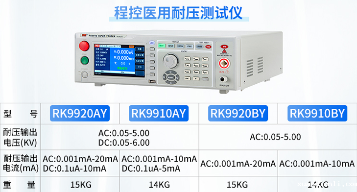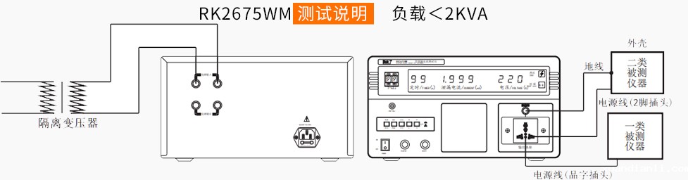 RK2675AM (500VA) . RK2675WM(无源). RK2675B(1000VA).RK2675C(2000VA).RK2675D(3000VA).RK2675E(5000VA)这几款是目前较为常用的泄漏电流测试仪。
