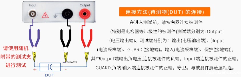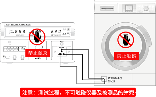 安全注意:测试过程中,仪器及被测品外壳可能带电,严禁用手触摸, 以防造成电击,出现安全事故。