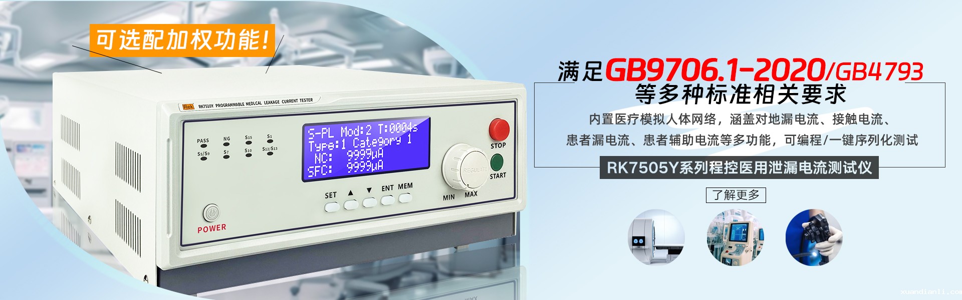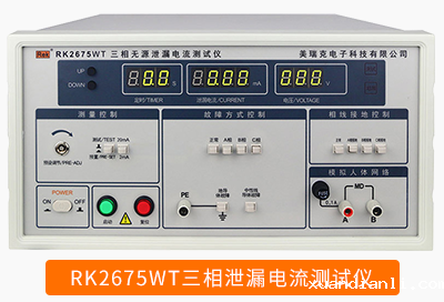 RK2675系列:该系列世需电流测试仪符合GB4706.1.分单相三相,符台GB4706.1,模拟人体阻抗,单(三相世网电流测试仪的泄属电流测量范围为0-20mA. 单相电流测试仪的变压器功率范围从250VA起,家用电器的泄品电流测试所需要的变压器功率不超过5kV.客户可根据极测物的变压器选定,