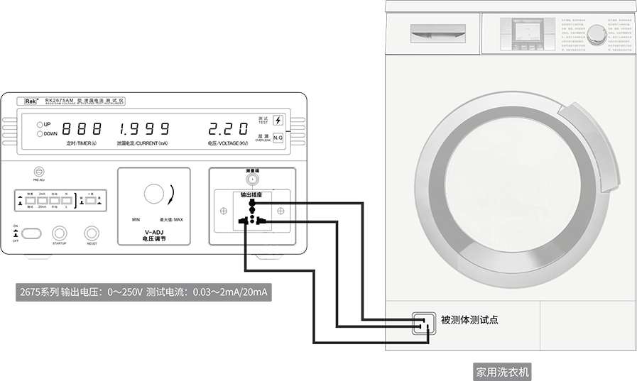 家用电器的耐要求并不高,5kV就能满足绝大多数家用电器的耐压测试需求,RK2670AM、RK2671AM/BM/CMRK2671DM是大电流型(交直流10KV,电流100ma),RK2672AM/BM/CM/DM/E/EM、RK2674A/B/C/-50/-100等型号的耐压测试仪。其中RK267是手动调节,RK71、RK99系列可实现自动化,通讯功能