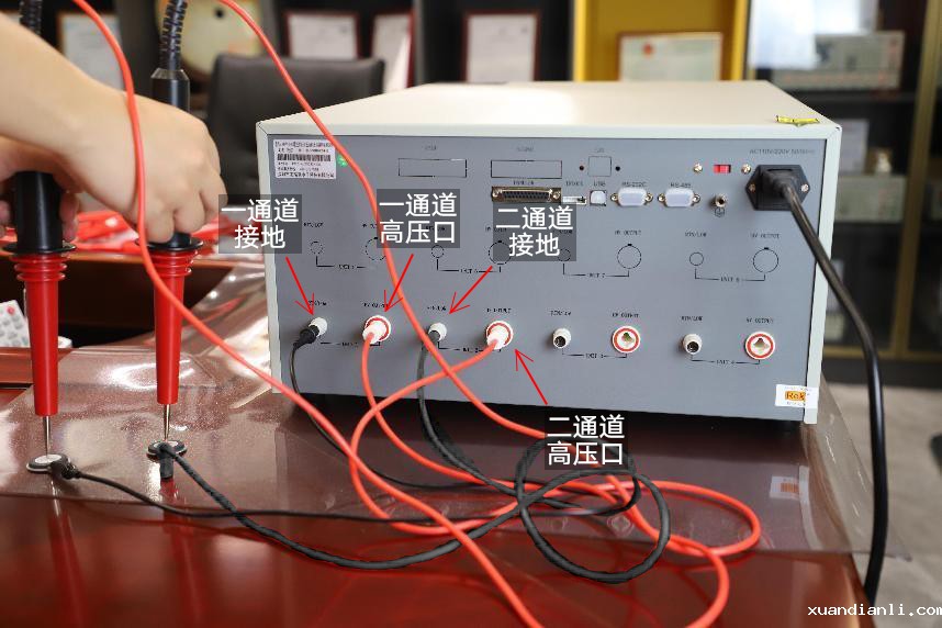 使仪器供电电源可靠接地状态,测试产品的耐压特性。