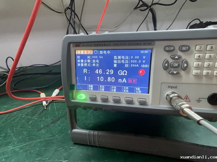 D.检验绝缘是否承受耐电压试验。若在电气设备的绝缘电阻低于某一限值时进行耐电压测试,将会产生较大的试验电流,造成热击穿而损坏电气设备的绝缘。因此,通常各式各样试验标准均规定在耐电压试验前,先测量绝缘电阻。